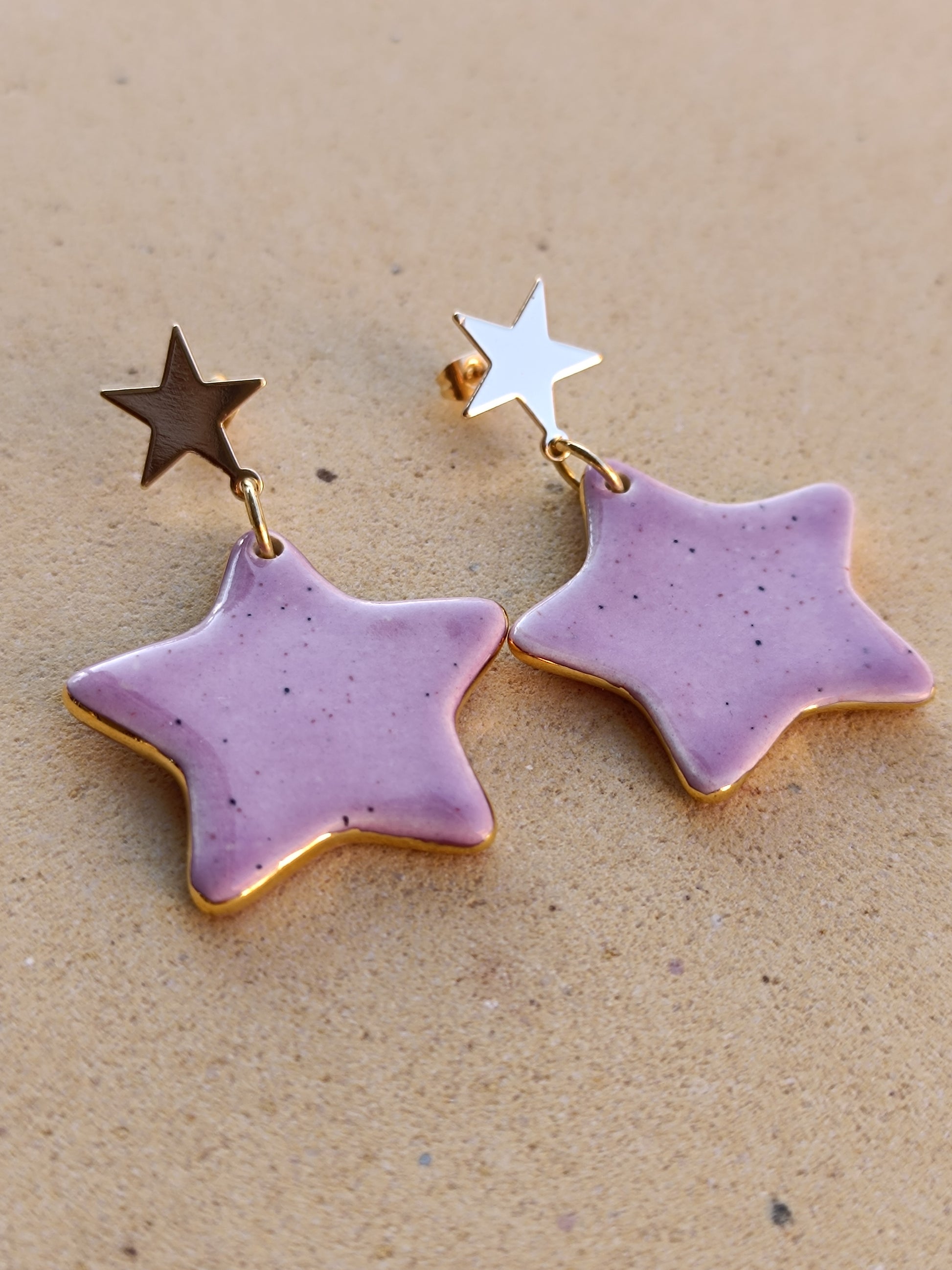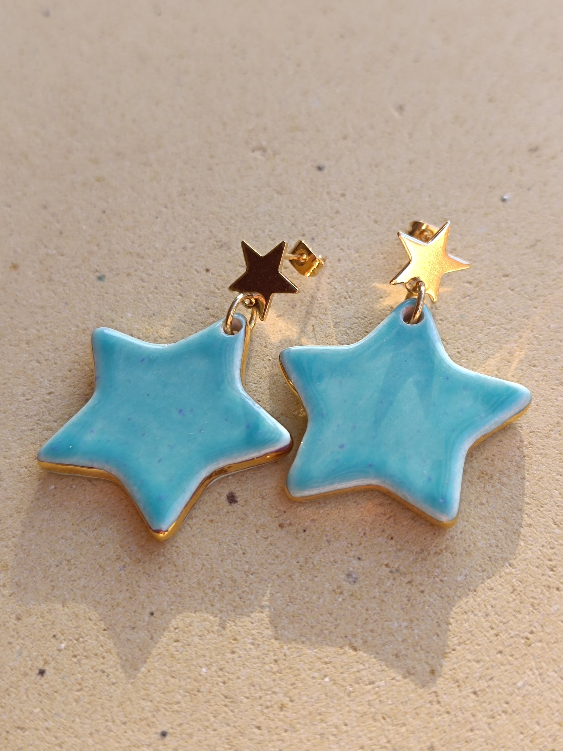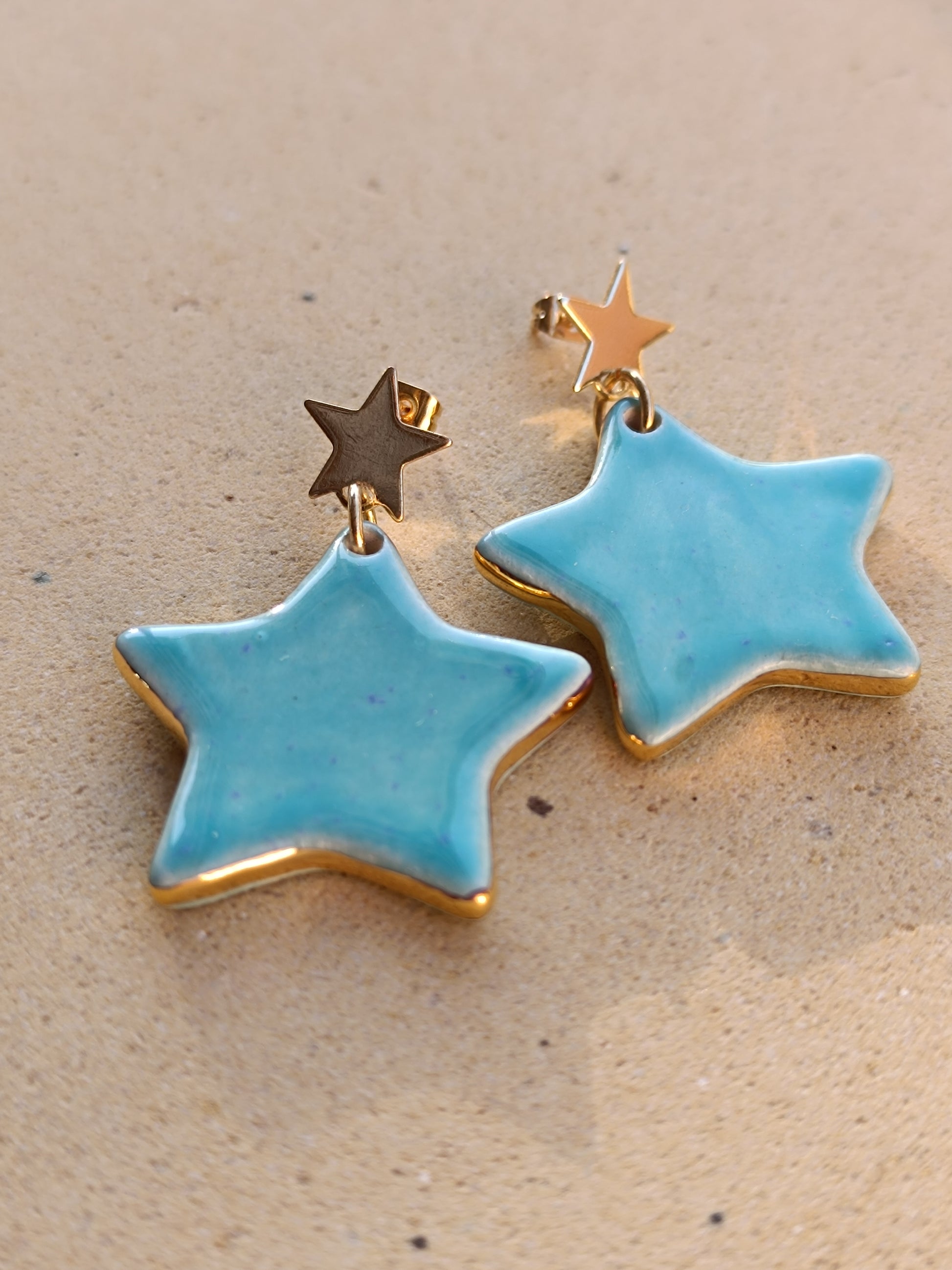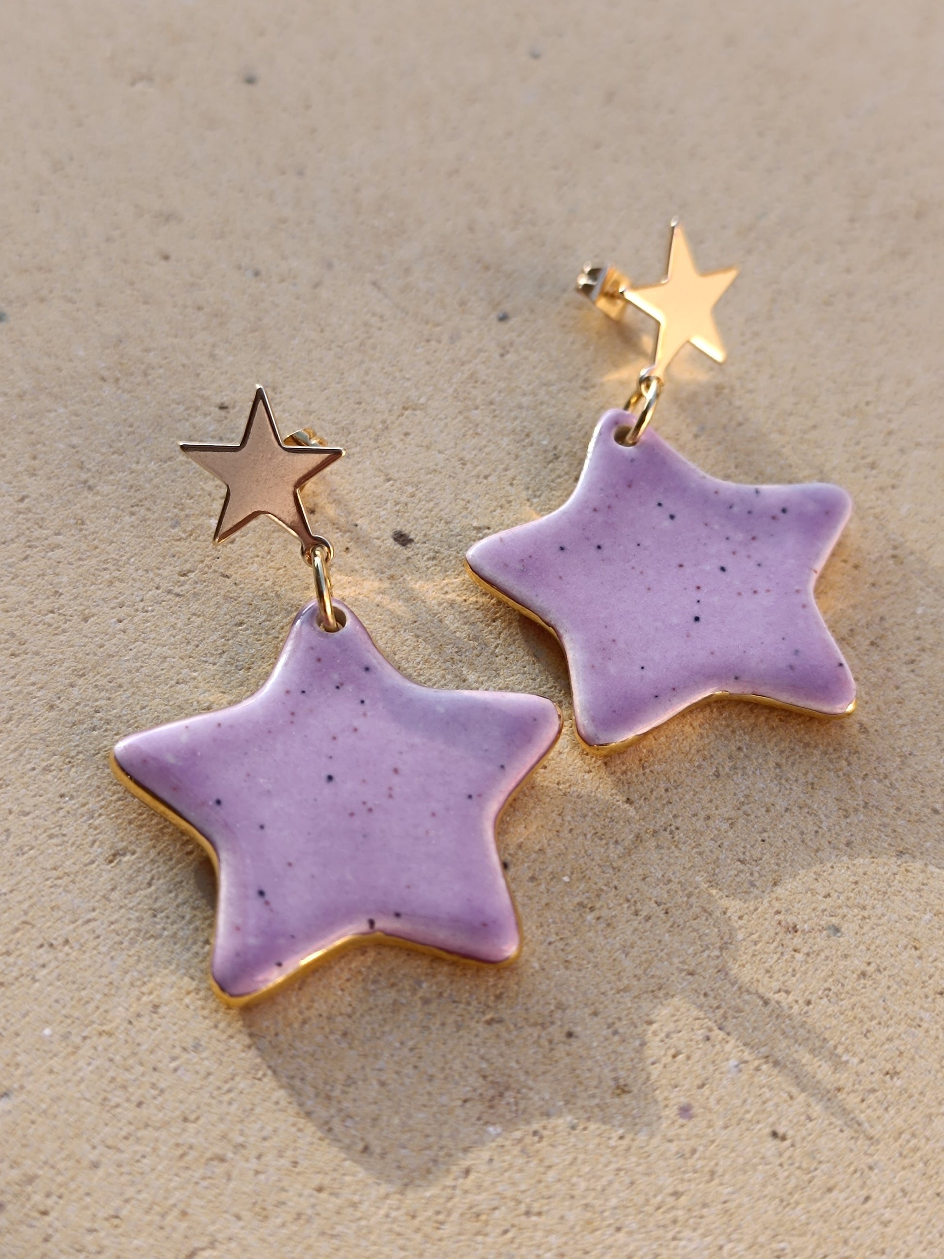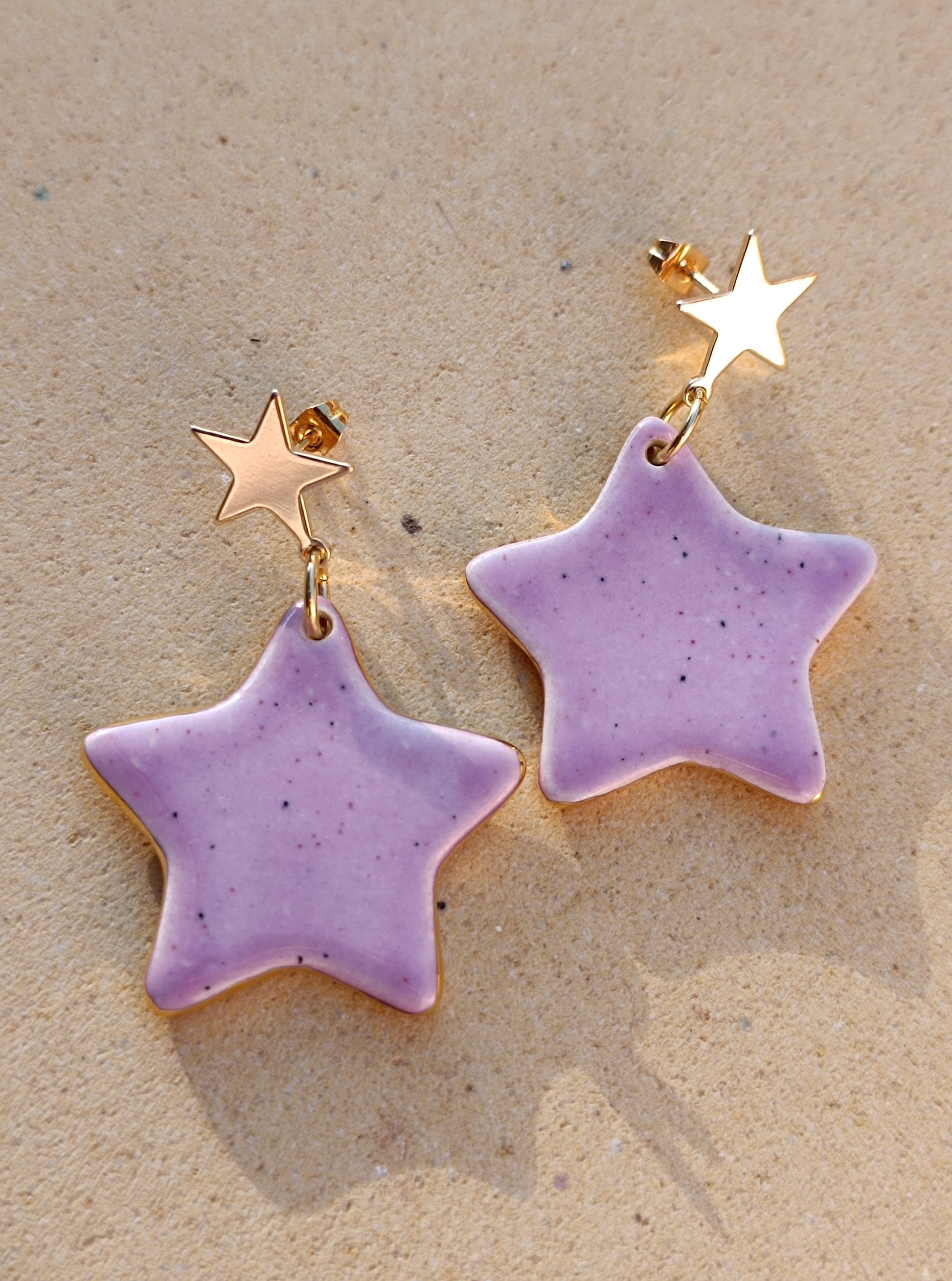 Aritos hechos y esmaltados a mano, en cerámica de baja temperatura con bordes y detalles en oro real.✨