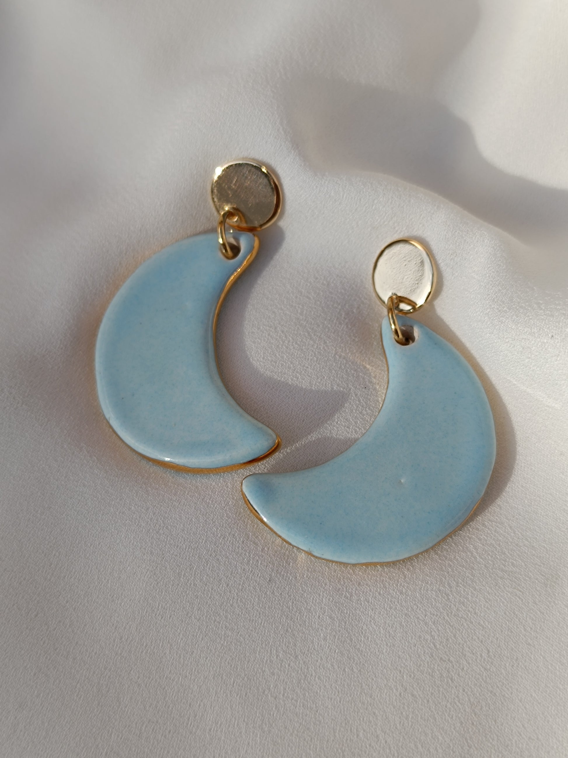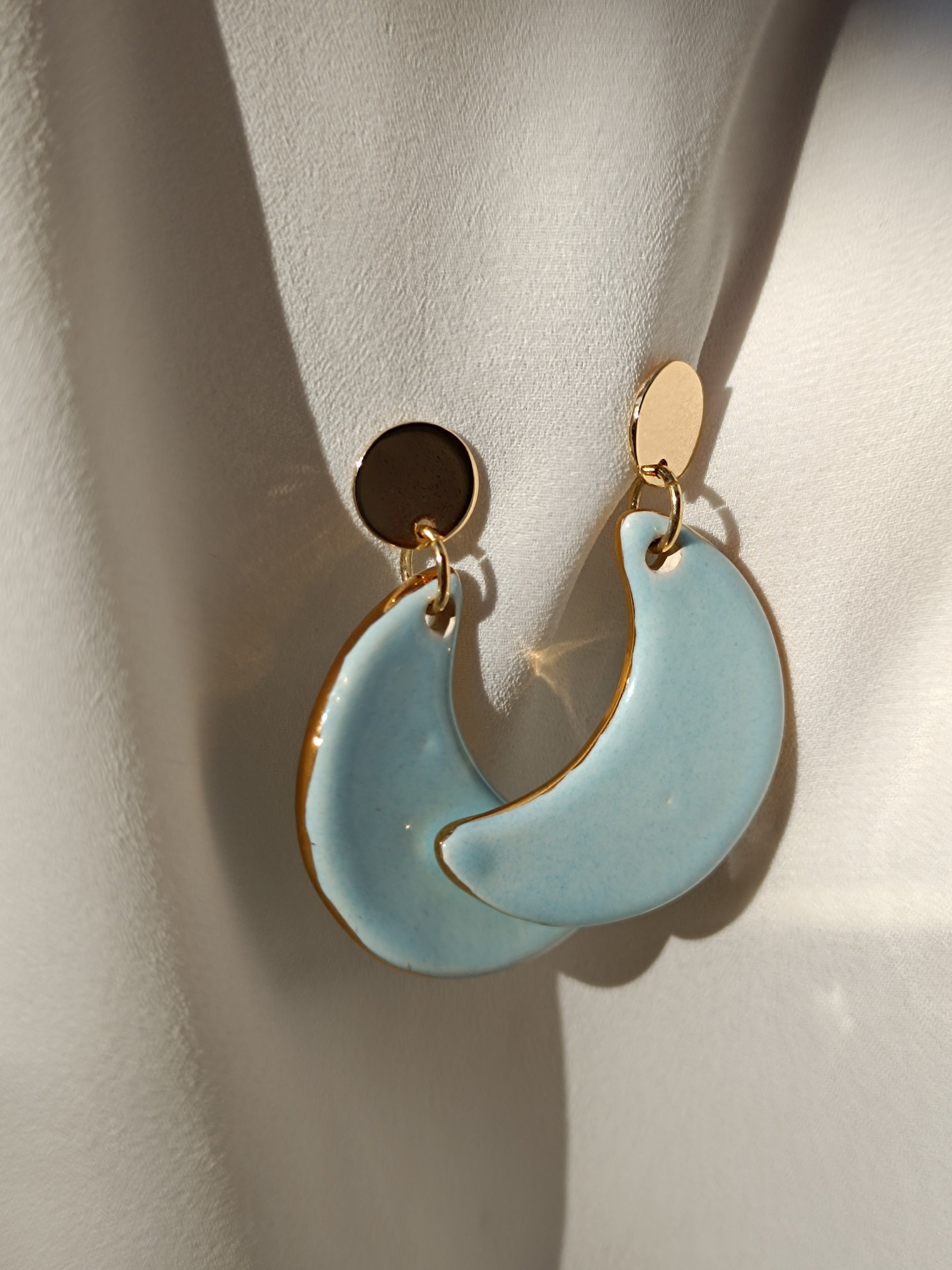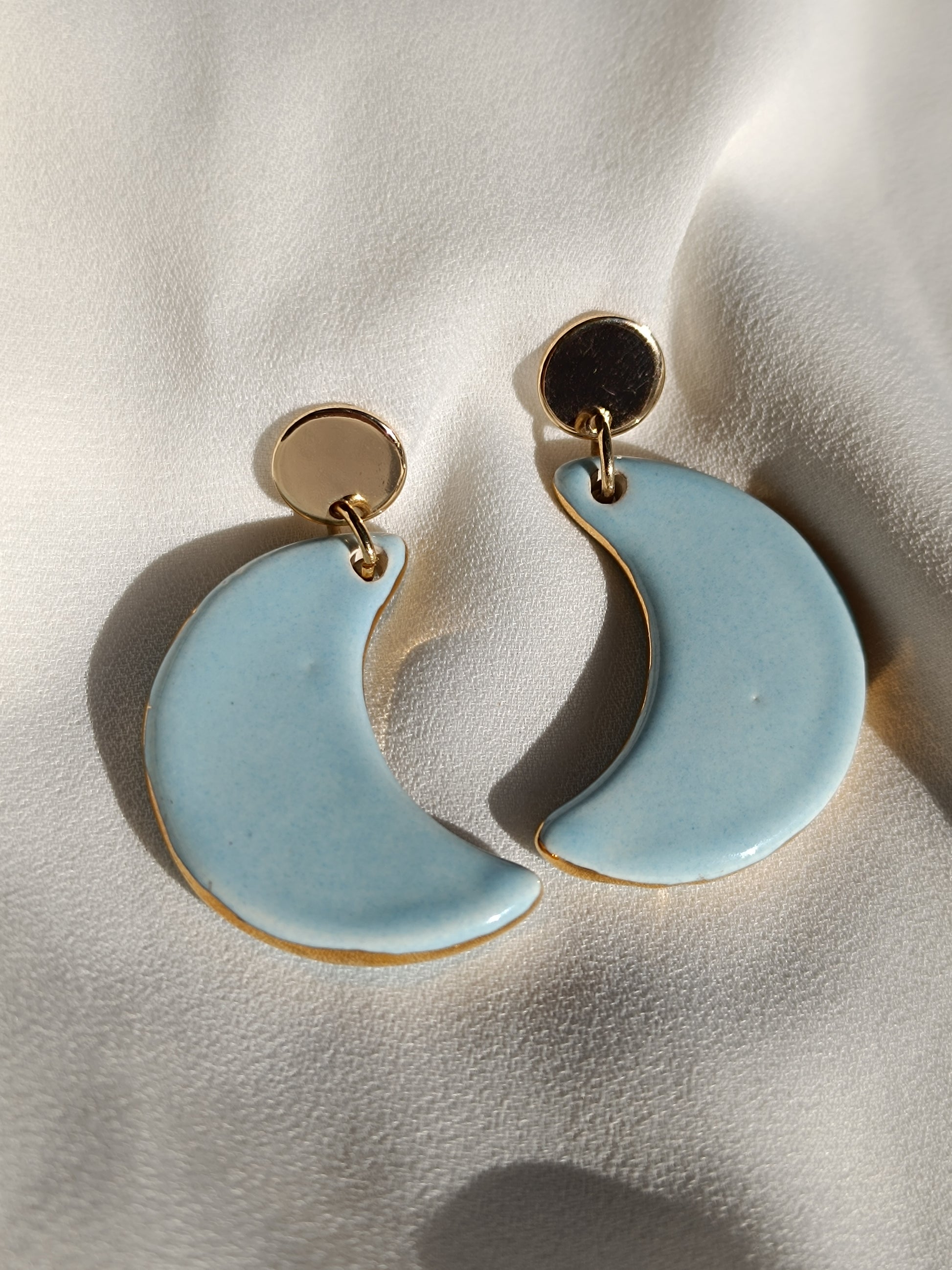 Aritos hechos y esmaltados a mano, en cerámica de baja temperatura con bordes y detalles en oro real.✨
