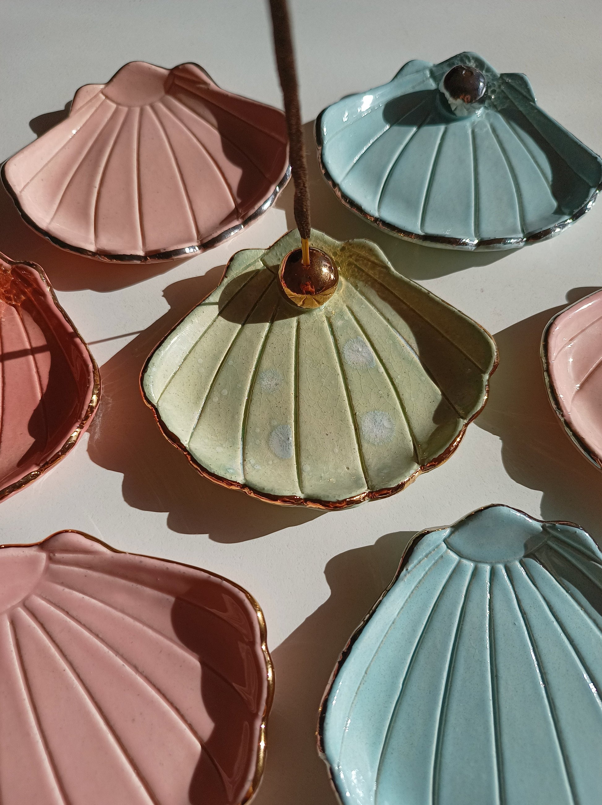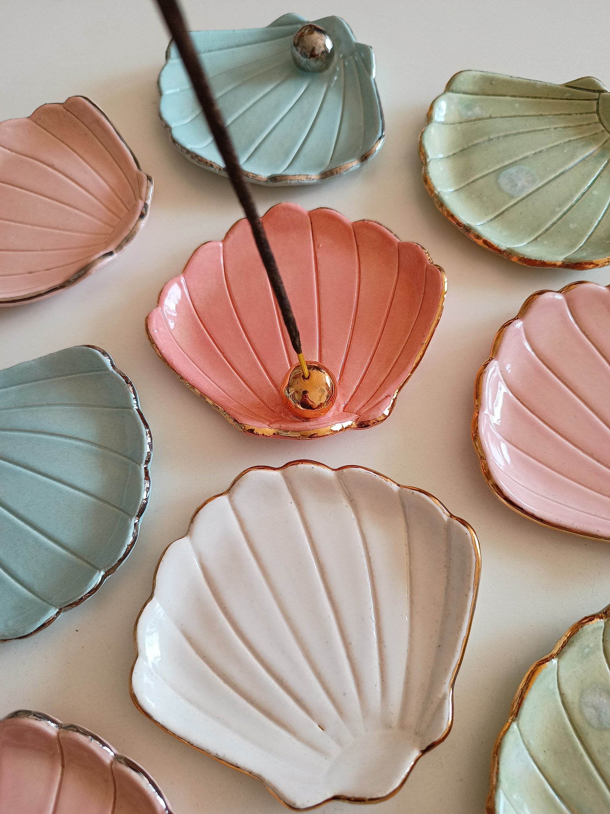 La conchita es una pieza ideal para dar un toque marino a tu espacio, puedes usarlo como joyero, para dejar tus llaves o solo para lucirla en tu mesa de centro. Está hecha de cerámica de baja temperatura paper clay que te hará recordar la arena de mar. Tiene borde en oro real ✨.